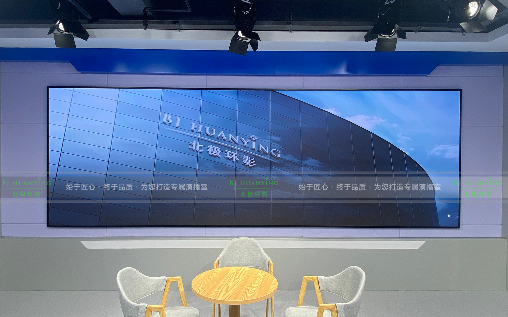 整个演播室功能全面,划分为播报区,座谈区,站播区,虚拟区,导播区几大区域,为用户提供了无限的创作和创意空间,满足客户多场景应用需求。该项目占地面积约140平米,施工周期2个月。