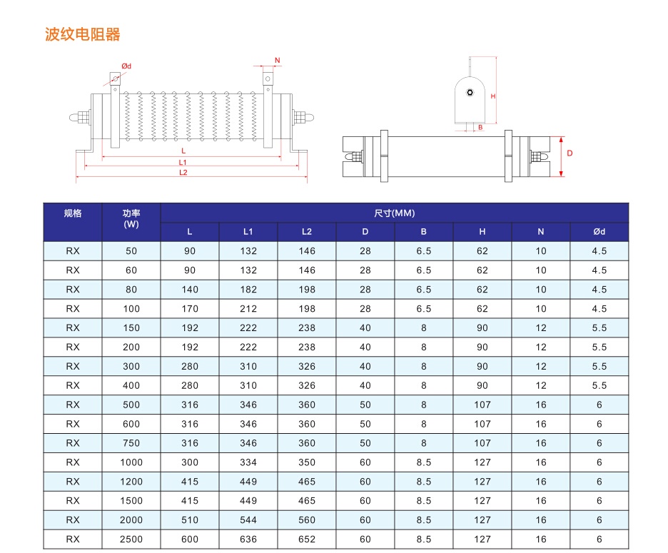 RH型涂料绕线电阻器是一种功率型绕线电阻器,该产品采用波状电阻合金带以侧立形式缠绕在陶瓷骨架上,表面被覆绝缘耐高温涂料,有利于散热,并配有安装支架,电阻器具有功率大,耐过能力强,安装方便等特点。
