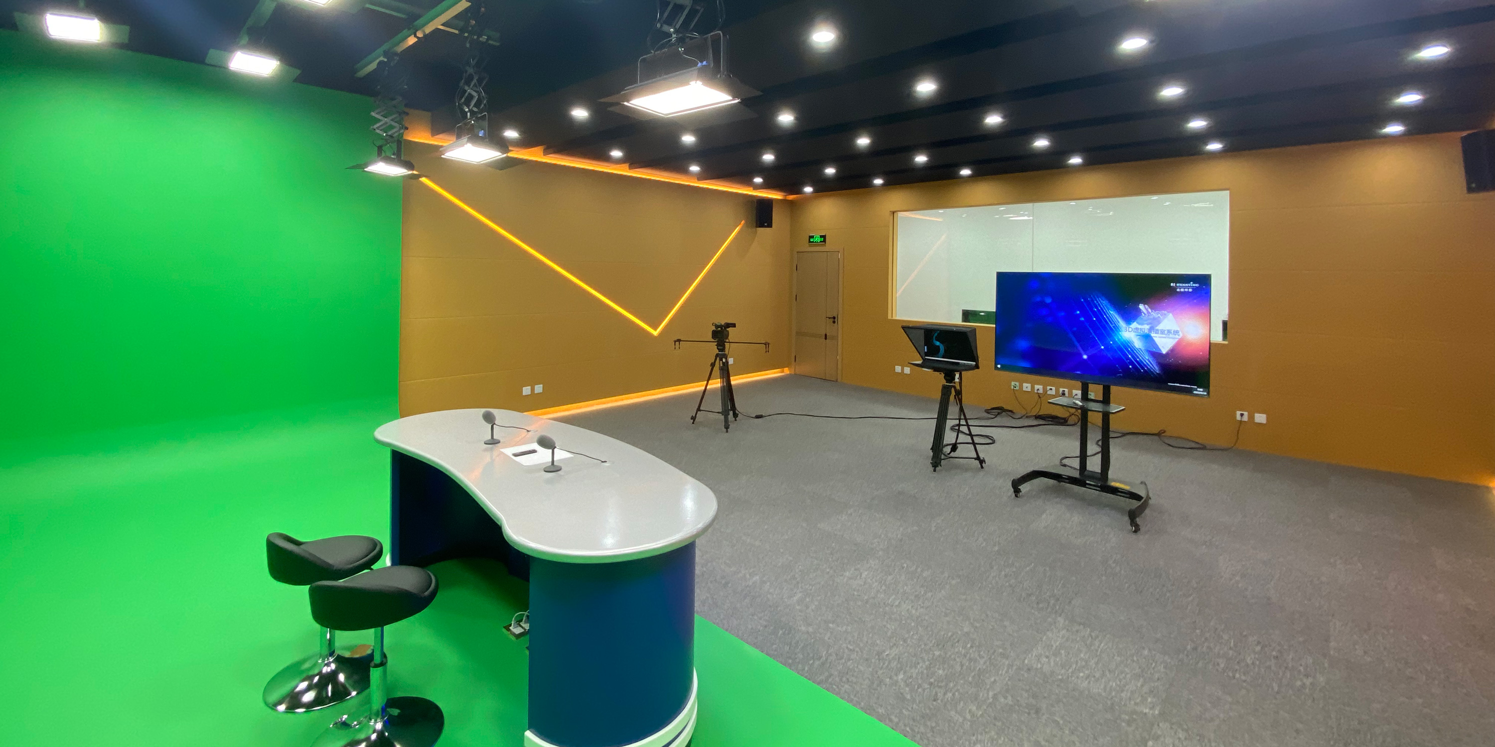 虚拟演播室部分:九州ku酷游自主研发的虚拟演播室系统提供大量的三维模型库,让用户自由搭建个性化的场景。支持多机位实时抠像,无限蓝、绿箱,局部抠像,处理抠色完美,细腻,平滑,充分满足直播演播室节目制作的便利和安全,增强节目的表现力,丰富节目的内容。