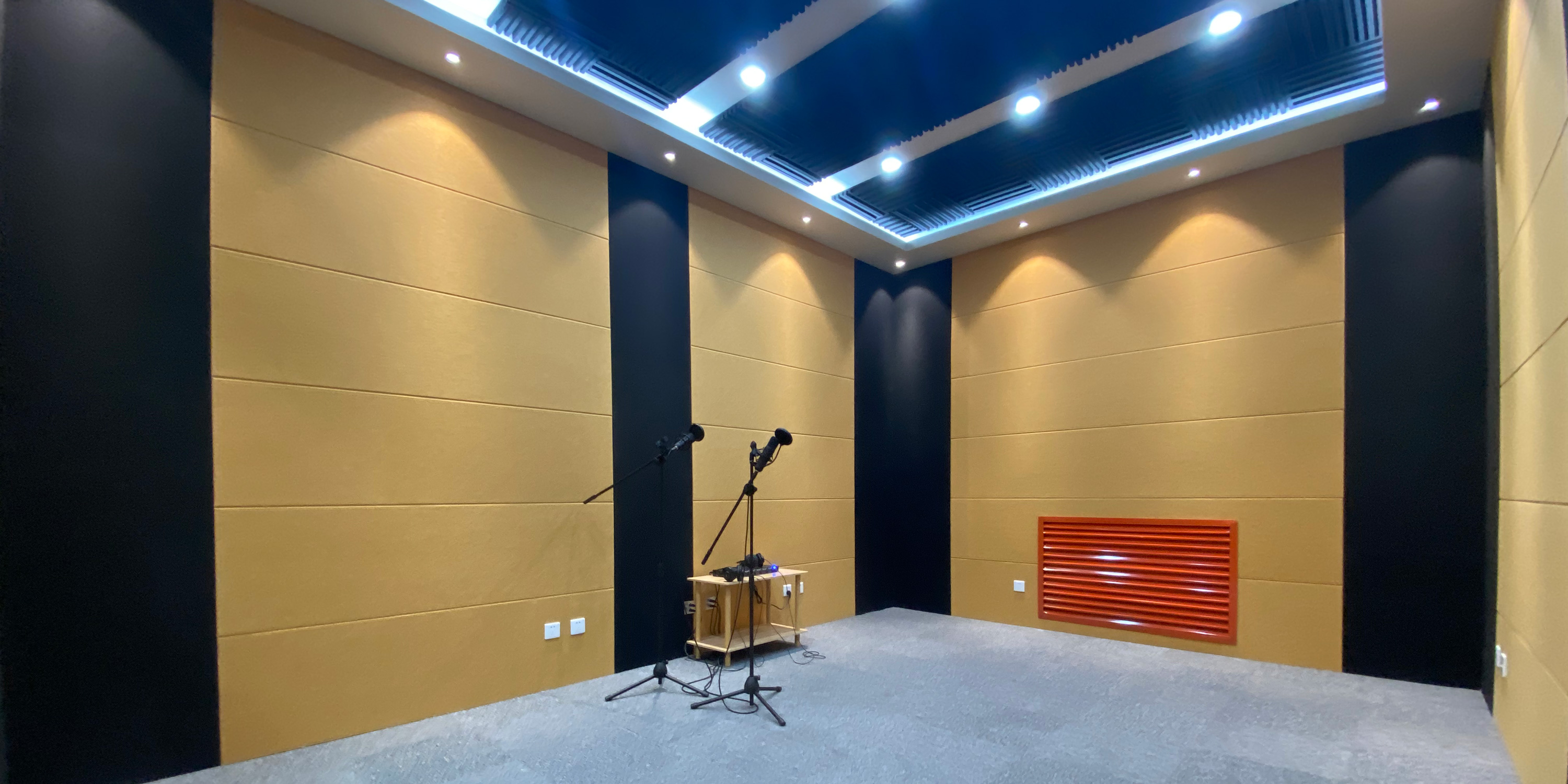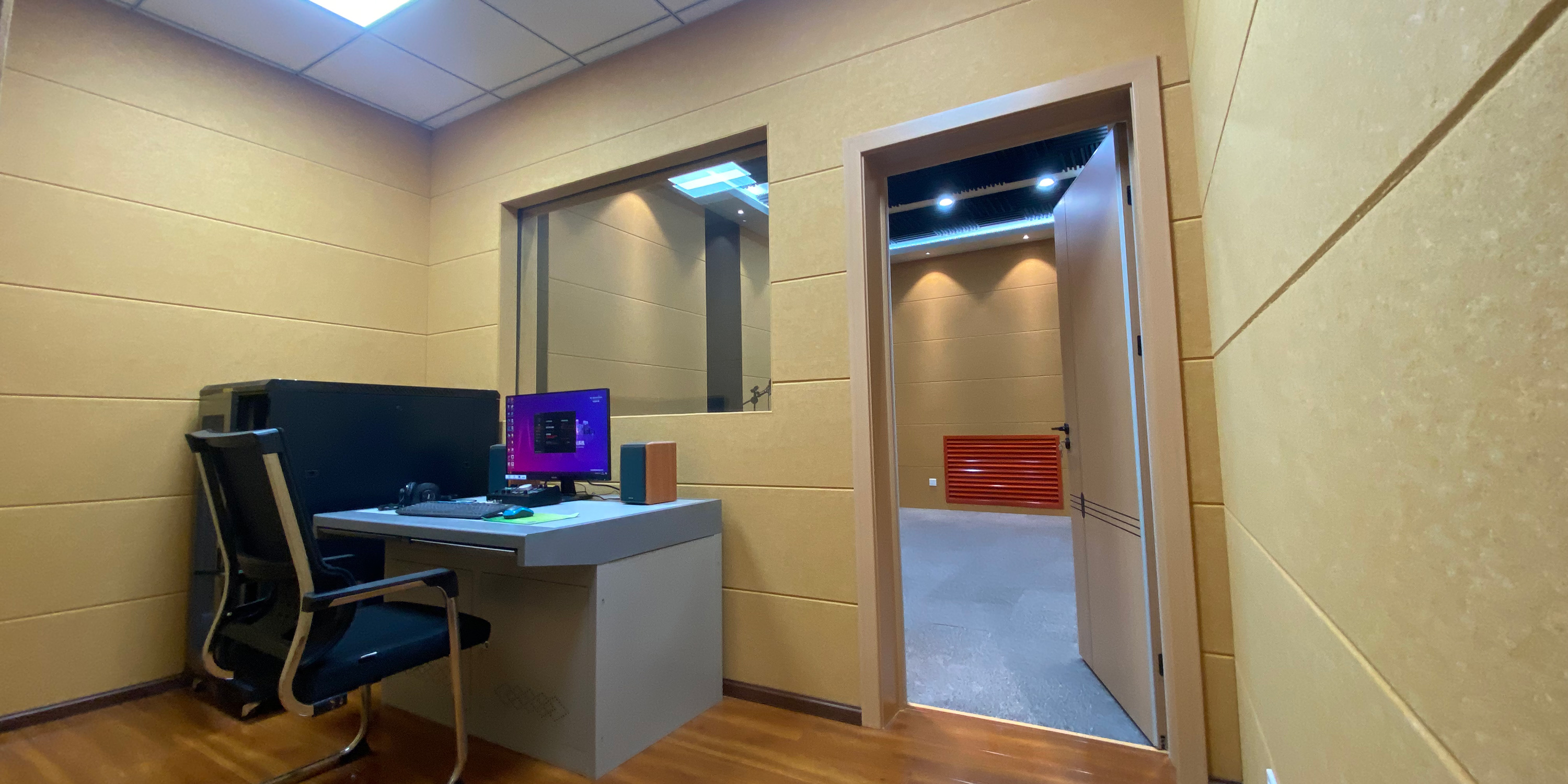 录音棚部分:系统组成上,录音棚是为创造特定的录音环境声学条件建造的专用场地,搭配专业的录音设备构建起完美的录音棚系统;在功能区分上,录音棚由录音室和控制室两部分组成:录音室主要用于多声道声源的采集,设有各种类型的拾音话筒和头戴耳麦、耳机分配器等设备;控制室用于采录编全过程的操作和控制,兼作后期节目制作,主要设备包括数字调音台、音频工作站、后期制作、数据传输和内部通话系统等。