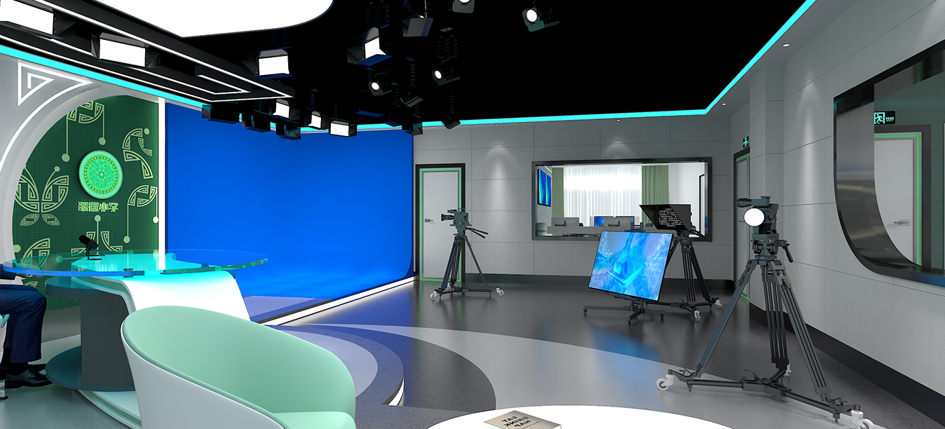 从前期的设计策划,到设备的提供、安装、调试以及整体的装修,九州ku酷游科技为北京翠微小学提供了全方位一体化的服务。该演播室分为实景播报区、虚拟演播区和导播区,用到的核心设备主要有虚拟演播室系统、非线性编辑系统、声学灯光系统及演播室舞美等。